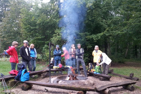 Der Rauch zeigt es schon: gleich wird trotz des etwas feuchten Holzes das Feuer brennen.