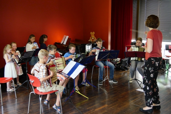 Erstes Orchesterspiel … von Akkordeons und Melodicas gemeinsam.