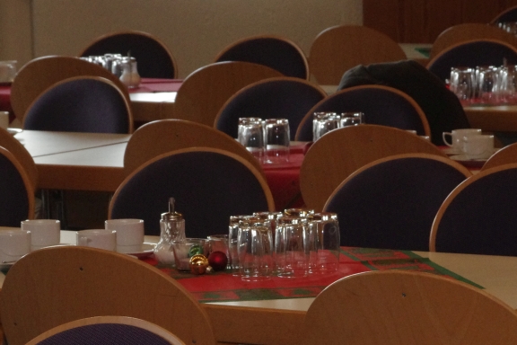 Tische sind dekoriert, Tassen und Gläser verteilt. Der Ansturm der Gäste kann kommen.